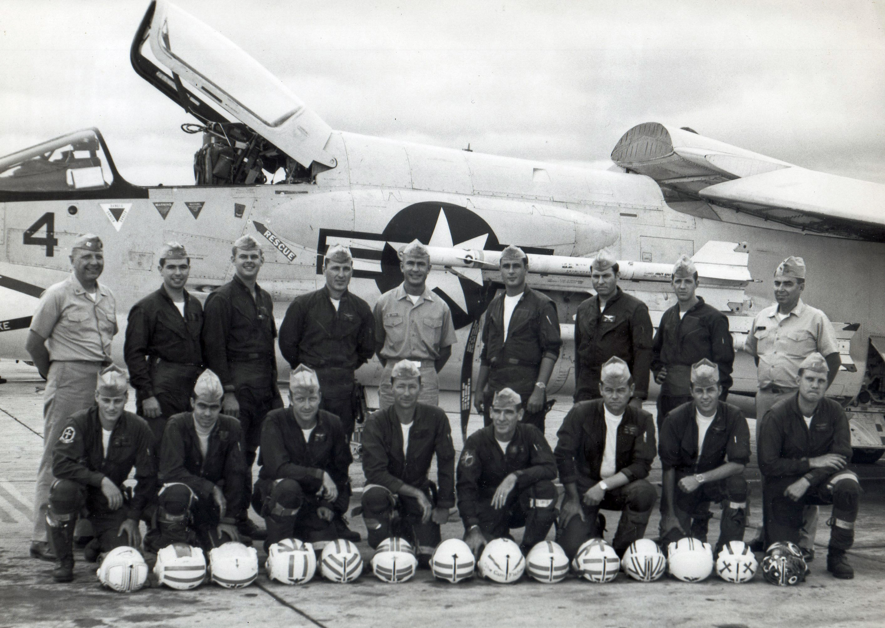 Schmidt, Ltjg Ross (mid top), Unk on canopy, Keith Weal (intake)